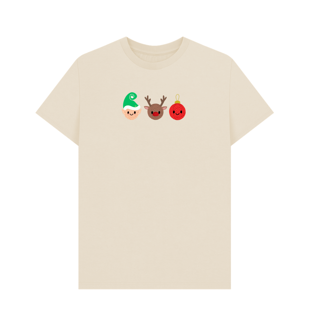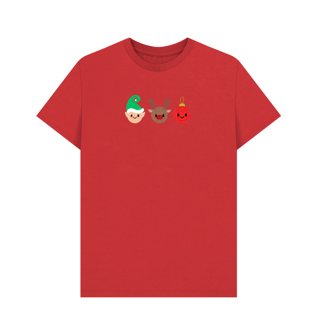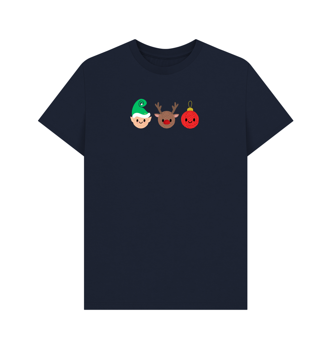Three of my cutie christmas yarnie balls on a festive tee! If like me you get FAR too hot when you are cooking christmas lunch for a Christmas jumper...try a tee!