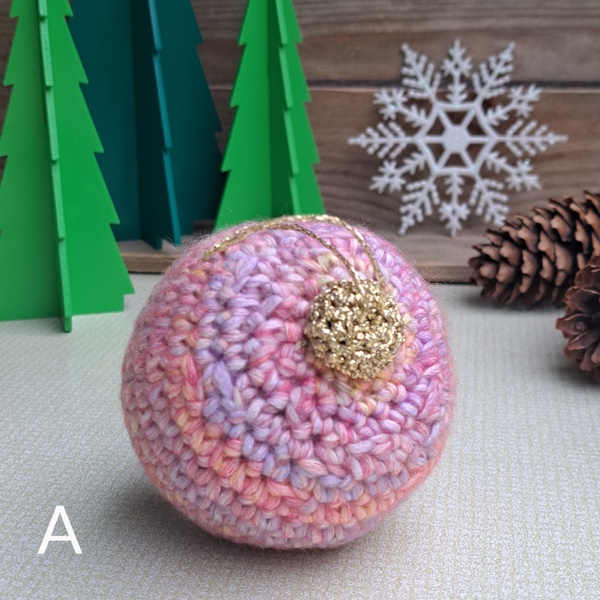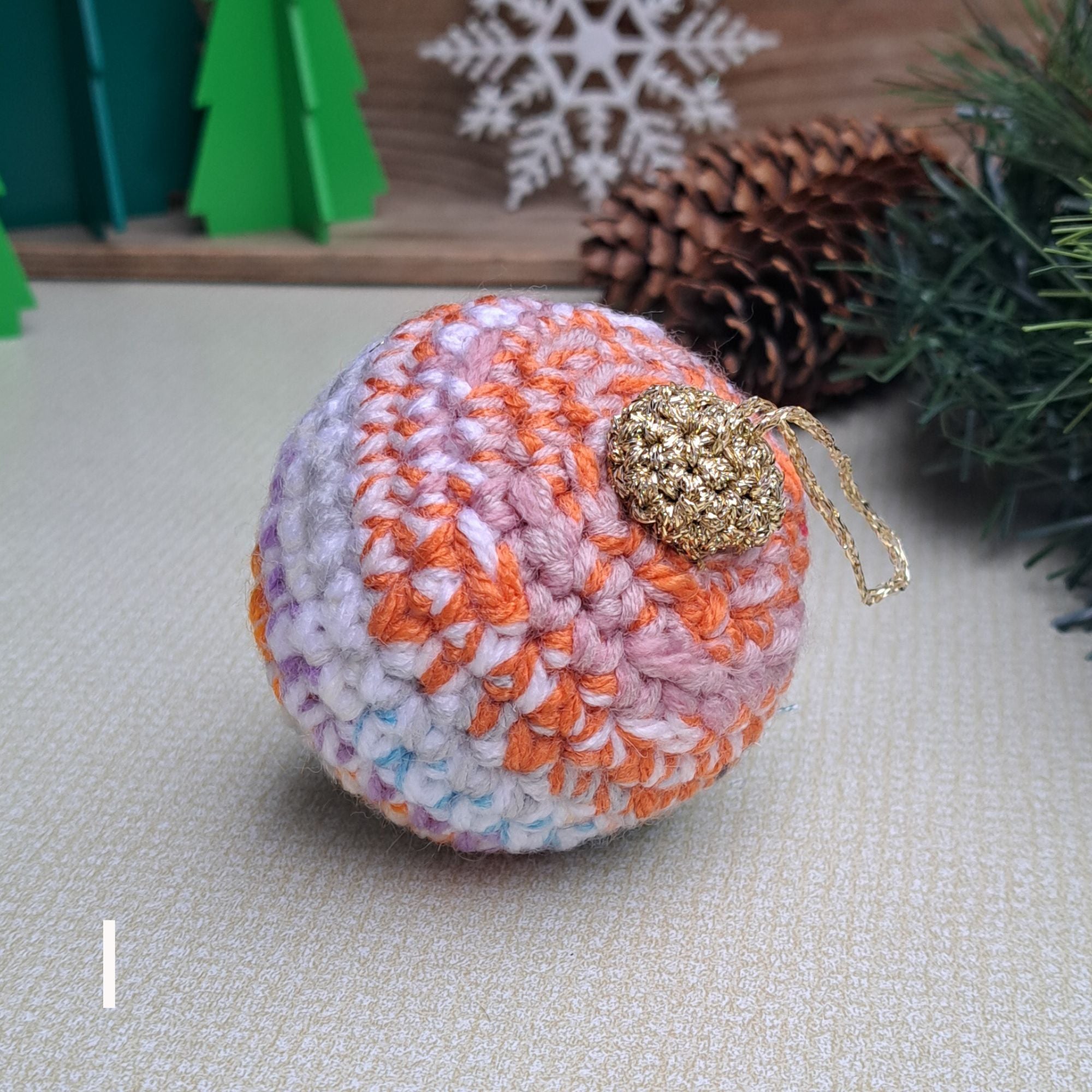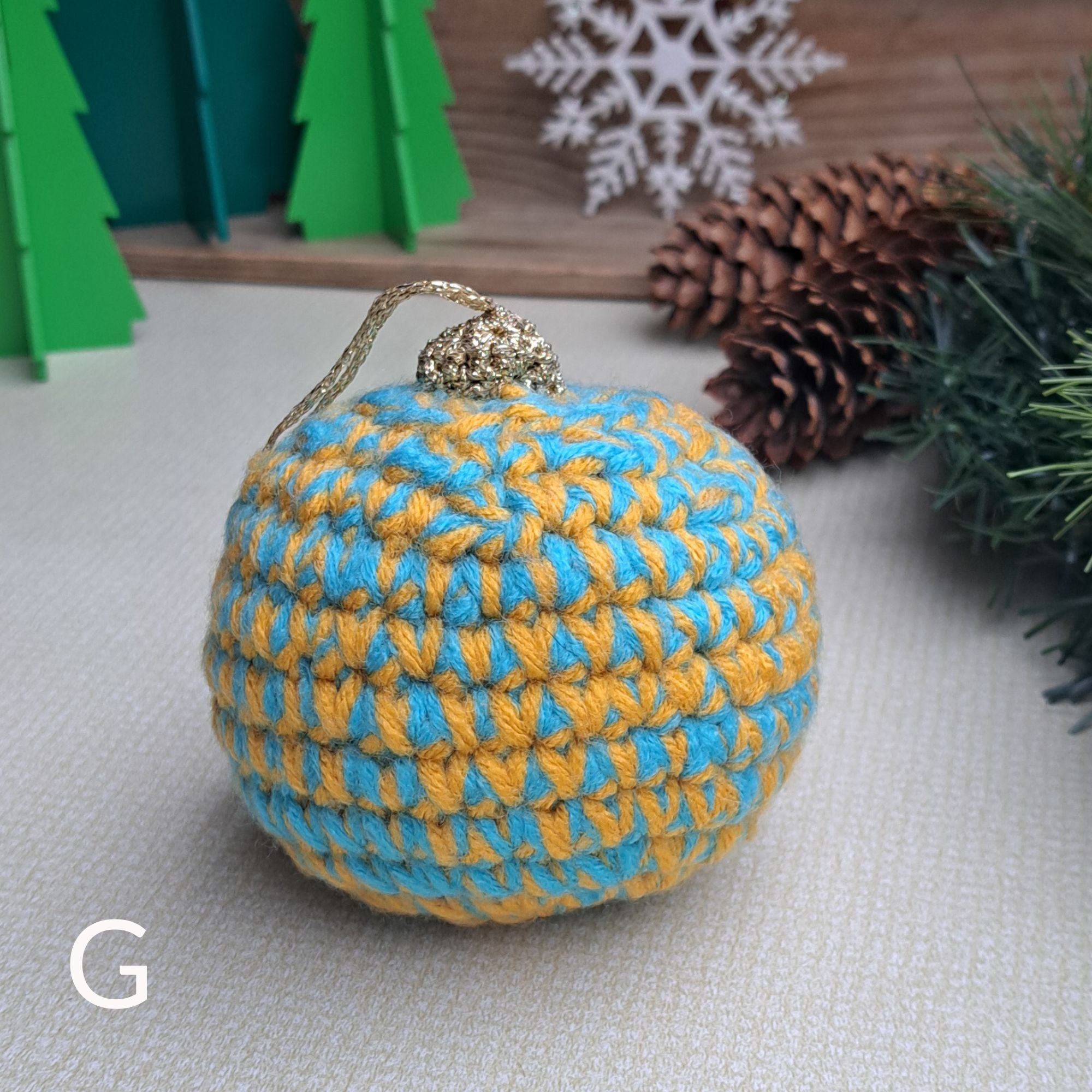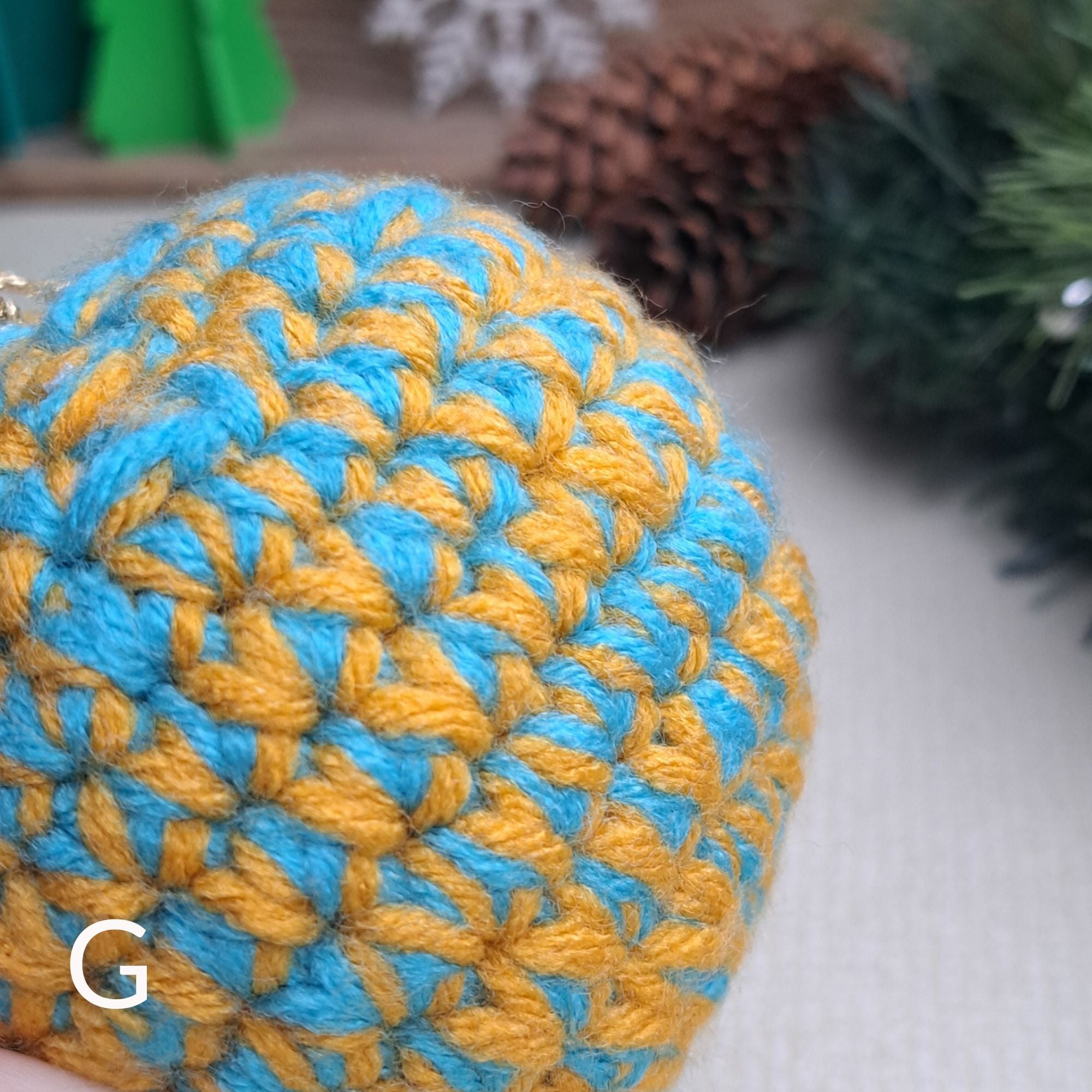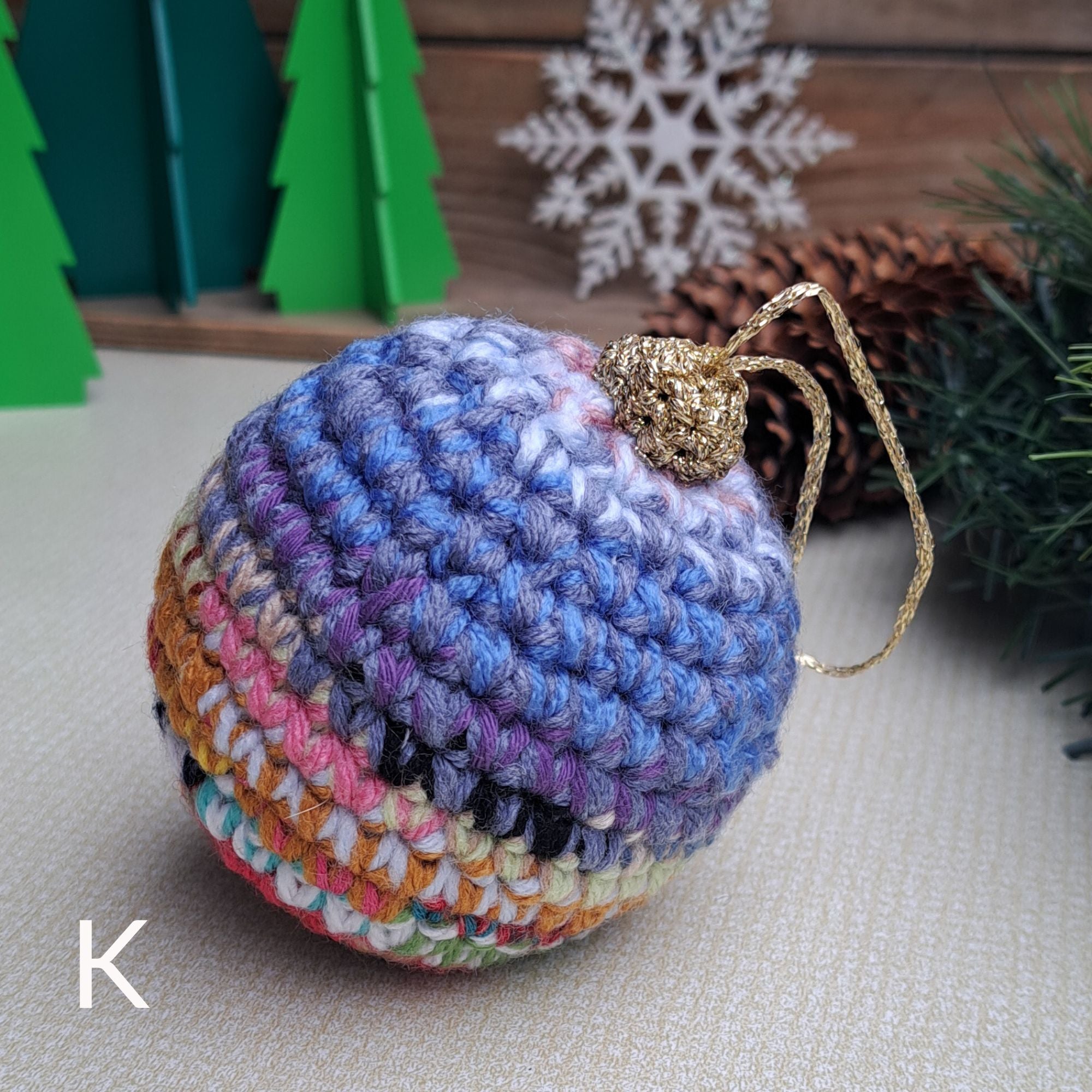 Yarn is collected from projects, samples and 'end of balls' all year and then tie the yarn together, and create scrap balls. I then crochet them together to create beautiful waste free christmas decor.