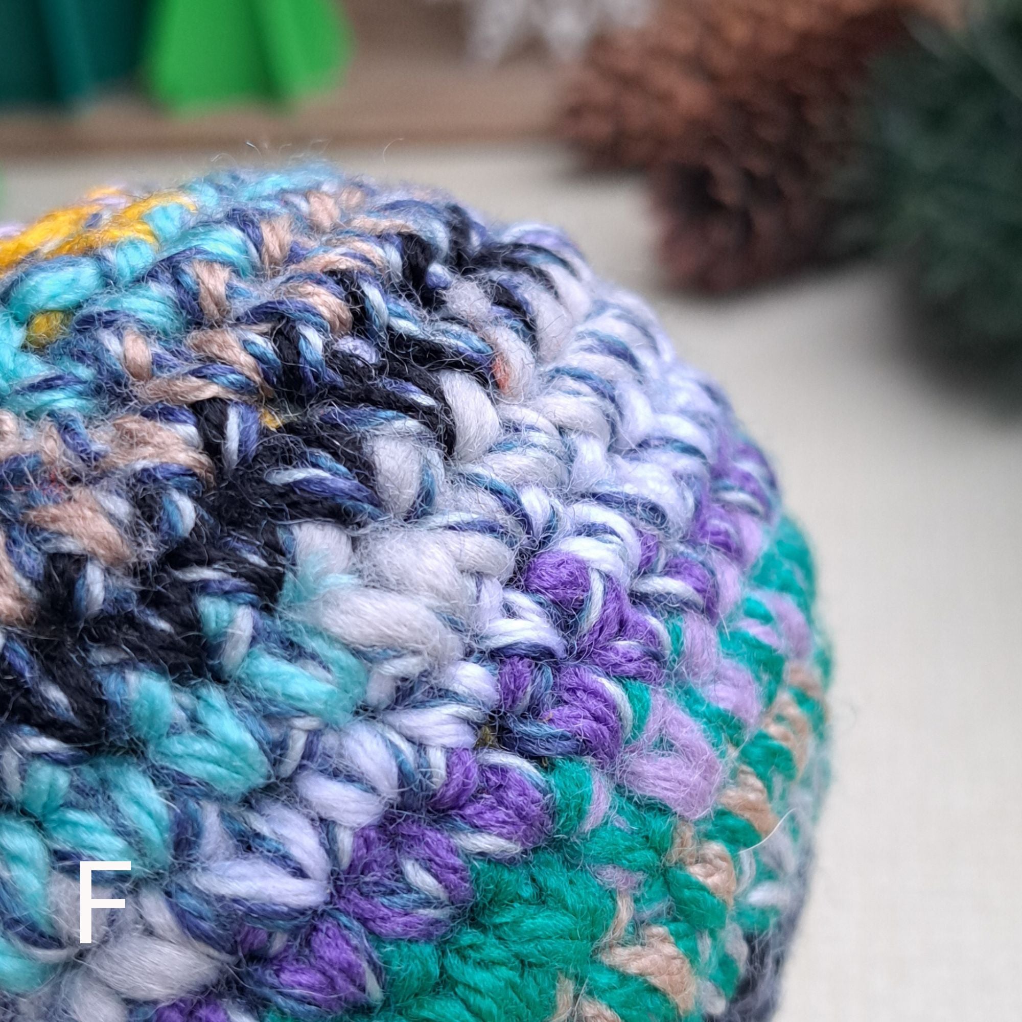 These Waste Not baubles are one of a kind crochet creations, made by using ends of yarn that may be thrown away otherwise.